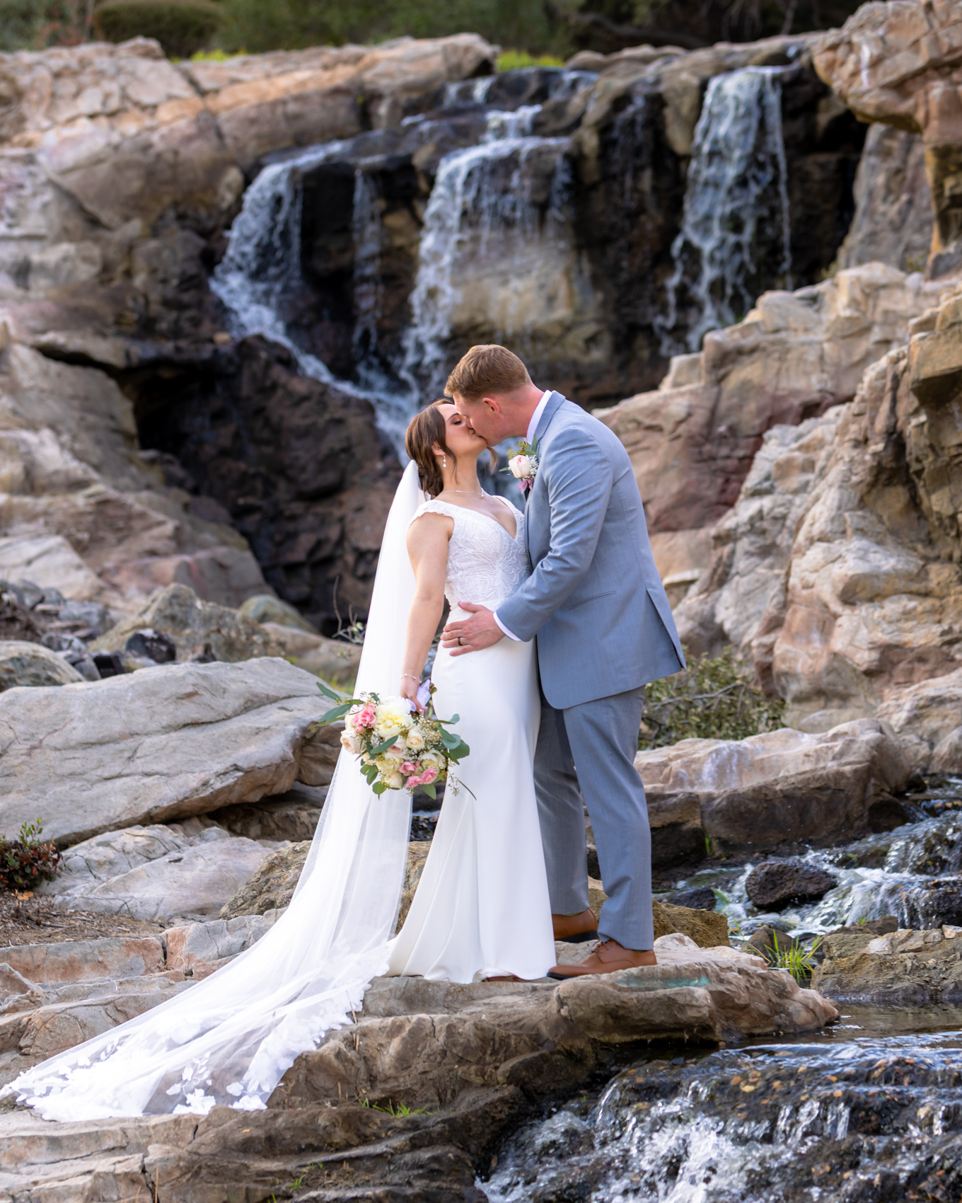 Photographers consistently rank Dove Canyon among the top venues in Orange County for wedding photography due to its diverse and photogenic settings. Beyond the obvious beauty of the oak terrace ceremony site, the venue offers numerous hidden gems for capturing memorable images includeing a waterfall and 18th hole scenic photos.